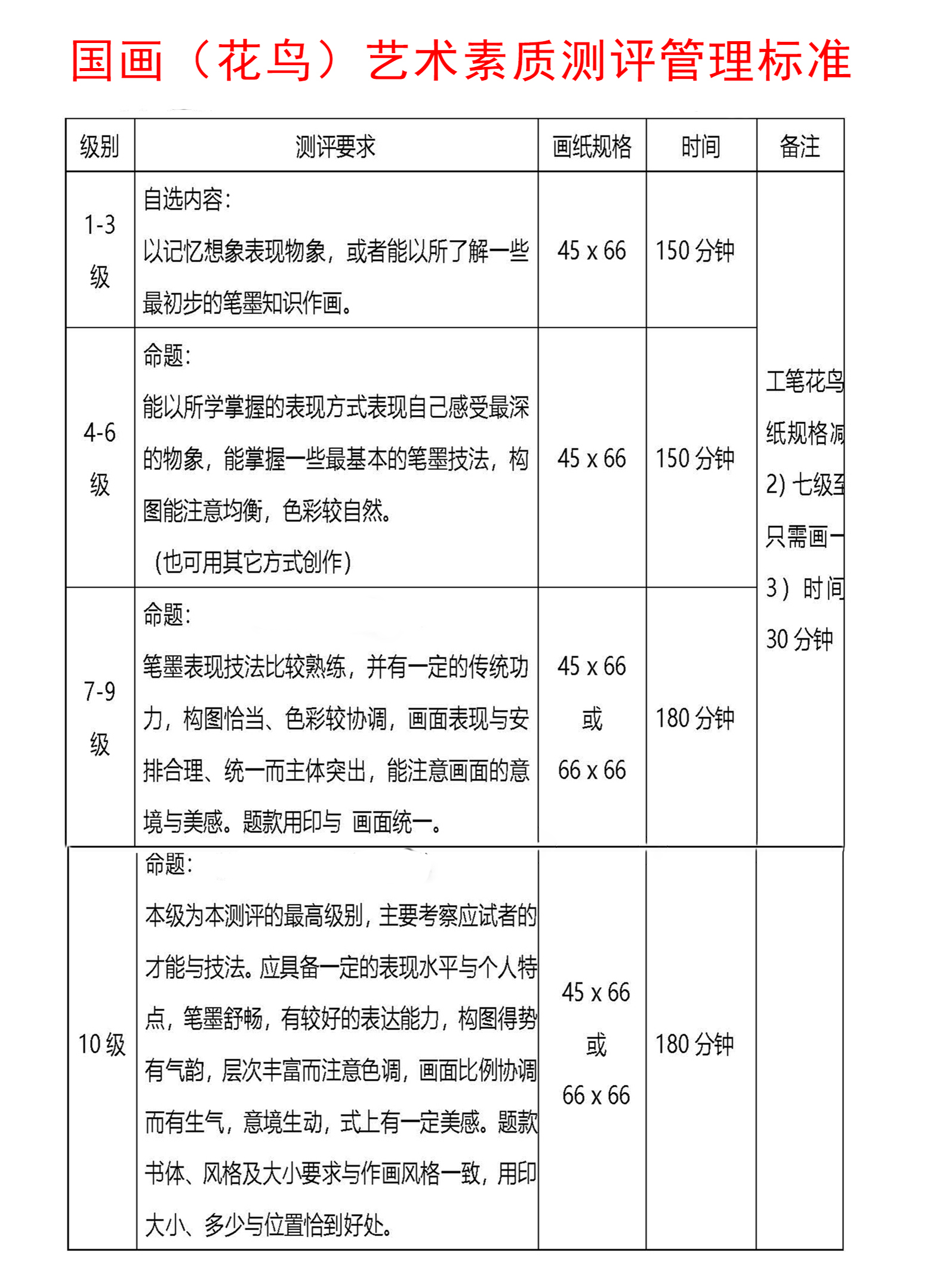 国画(花鸟)素质考评管理标准